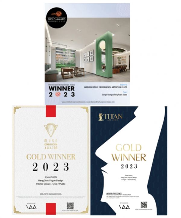 于2022年12月完工的温州龙湖龙誉城架空层,由杭州薇家环境艺术设计有限公司设计总监陈晓乐带领团队,从概念提报、到设计深化、落地施工等环节一体化完成。获得了2023年TITAN房地产奖金奖,2023年MUSE设计奖金奖,2023年IIDA国际室内设计金奖共计三项国际大奖。