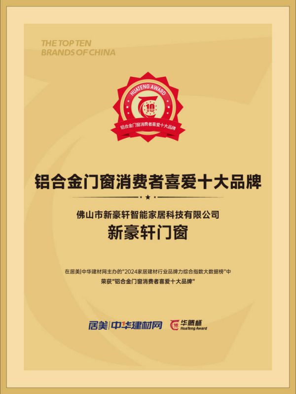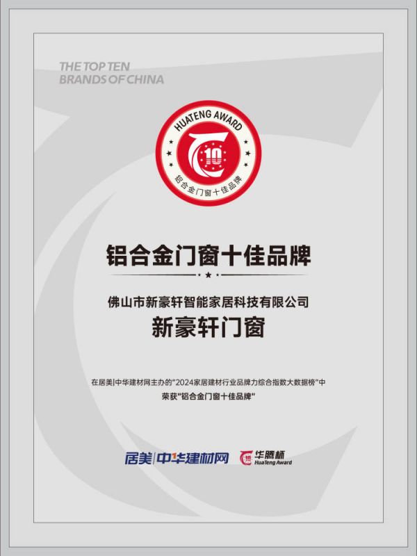 连续四年获铝合金门窗影响力十大品牌称号!新豪轩门窗以实力彰显品牌力量