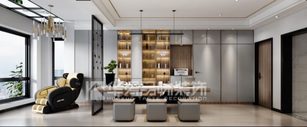 -拆除客厅相连的次卧墙,用半墙柜代替原有电视墙,原次卧改成茶室,客厅与茶室有连接,显得格局大。