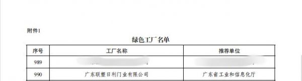 喜讯∣广东联塑日利门业有限公司入选国家级绿色工厂