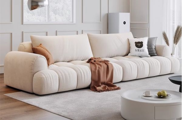 当然,选沙发也有大学问。我推荐的这款冬熊法式轻奢沙发以“云朵美学”为灵感,用700g/㎡的高密度猫爪牛奶绒面料,触感如羊绒般细腻,久坐也不易塌陷,让每一次落座都像是被云朵包裹。