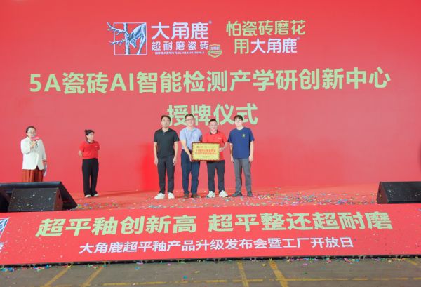 在技术突破的同时,大角鹿加速科研体系纵深布局。发布会上,大角鹿与西安交通大学广东研究院揭牌成立“5A瓷砖AI智能研发检测产学研创新中心”,并举行博士科创站授牌仪式,标志着大角鹿在智能检测、科研协同、技术创新等方向的全线升级,为品牌夯实技术护城河、输出行业标准构筑坚实的科研底座。