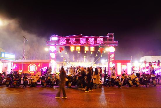 当夜幕降临,燕子矶夜市的灯光瞬间点亮城市的烟火气。霓虹闪烁中,来自全国各地的特色小吃香气四溢——锅包肉、烤冷面、钵钵鸡……令人目不暇接。孩子们可以畅玩套圈、射击、蹦蹦床等趣味游戏项目,大人们则围坐一桌,分享美食、畅饮聊天,感受最真实的生活气息与温暖人情。