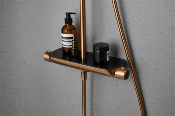 晨光初现,Bay 怡境™ 平台式恒温淋浴系统悄然为您开启一扇静谧而惬意的沐浴之门。它以升级的跑道式平台设计,勾勒出圆润流畅的优雅轮廓,不仅巧妙规避意外碰撞,更便于日常清洁与打理。平台表面不仅是坚实的日常依托,还巧妙融入精致置物空间,轻松收纳沐浴用品,让每一次洗浴都从容而自在。