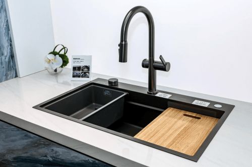 厨房区果蔬净洗机集洗切沥排于一体,拥有三重净化模式,5分钟即可去除农残,重新定义厨房健康标准,瀑布水均匀柔和,避免洗涤时飞溅,干爽洁净……从梳洗区、如厕区、淋浴区到厨房区域,九牧将智能互联理念深度融入空间设计,通过鸿蒙系统链接全卫浴空间产品,让每一次使用都贴心、顺畅、便捷。
