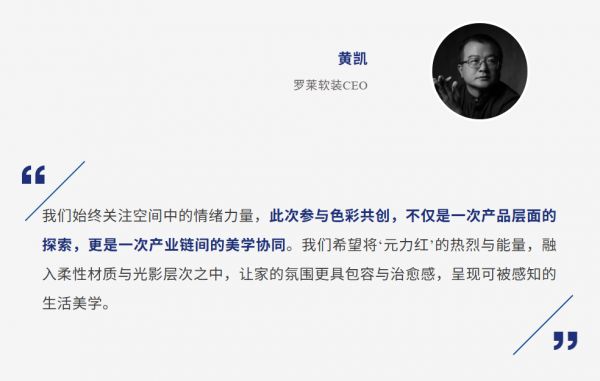 其中,“元力红”作为协同的通用语,成为连接不同家居品类的美学桥梁。这一中明度、中高艳度的复合红色,具有精妙的平衡感,既能与各类色系巧妙融合,又不失和谐。它从古老陶器的赭石、壁画中的朱砂汲取文化底蕴,在科技荧红、城市霓虹中融入时代气息。
