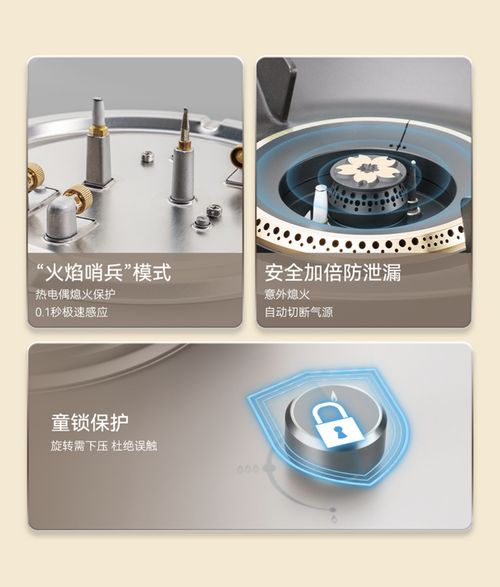 与此同时,樱花御风燃气灶S860G配备多重安全防护系统,如热电偶熄火保护、防泄漏系统及童锁设计等,无论孩子意外触碰旋钮,还是火焰突然熄灭,都能及时响应,为家庭筑起可靠屏障,让烹饪全程安心无忧。