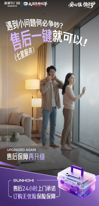 而今年七星服务3.0升级,将率先在业内引入VR量尺系统、智能鹰眼监控系统,通过数字化工具提升服务的精细度和透明度,业主可远程实时监控安装进度,双向语音功能便捷交流,提高安装质效。同时携手中国平安推出“安心做门窗”、“产品责任险”、“订购无忧险”三重保障,让产品质量、安装安全、交付售后每个环节都有相应的保险承保,构建起业内首个覆盖门窗产品全生命周期的保障网络,让消费者在享受便捷服务的同时,获得实实在在的服务保障。