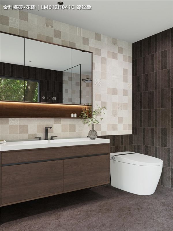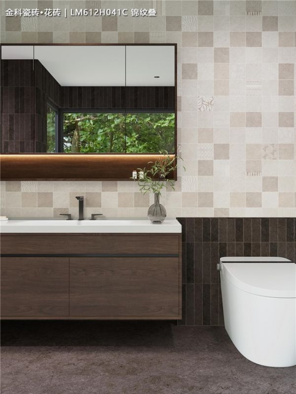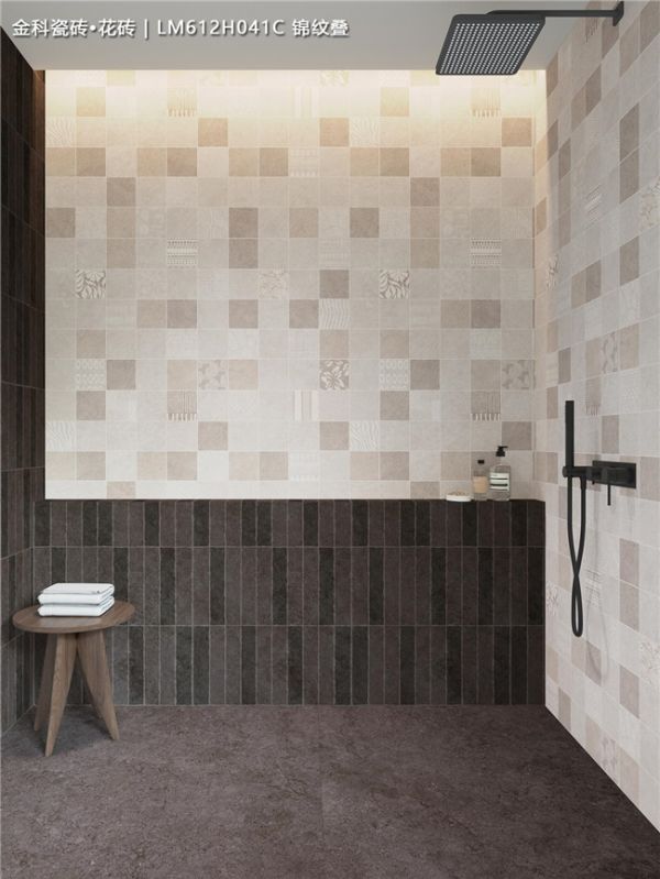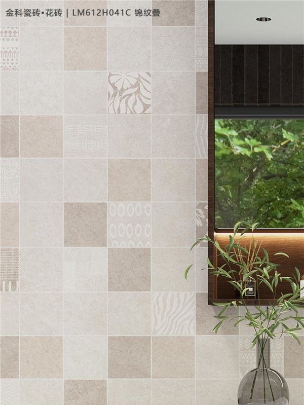 初见就被它的纹路吸引住了!它由无数个大地色系的小方块拼接而成,每个方块内都雕琢着独特的几何线条、植物纹样或抽象符号,如同精心收集的化石与琥珀,深浅交错。铺贴后,这些浮雕般的图案在哑光釉面下交织,形成一幅复古、精致且充满层次感的艺术拼图,让墙面瞬间拥有时光沉淀的故事感。