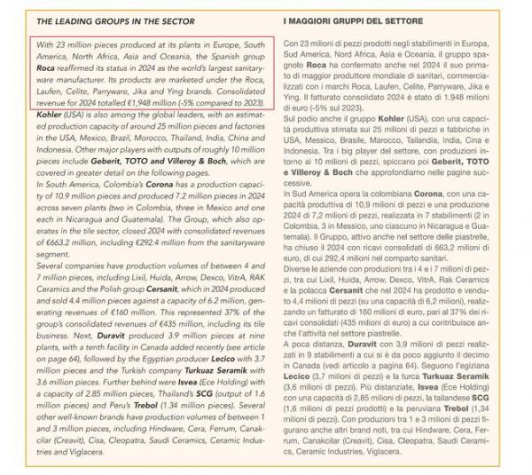 近日,国际权威行业杂志《Ceramic World Review》(陶瓷世界评论)正式了2024年“全球卫生陶瓷领导制造商(The world's leading sanitaryware manufacturers)名单”。榜单显示,西班牙百年企业乐家集团凭借稳健的全球布局与强劲的产能优势,连续7年登顶全球第一,再次彰显了其在全球卫浴市场的领导地位。