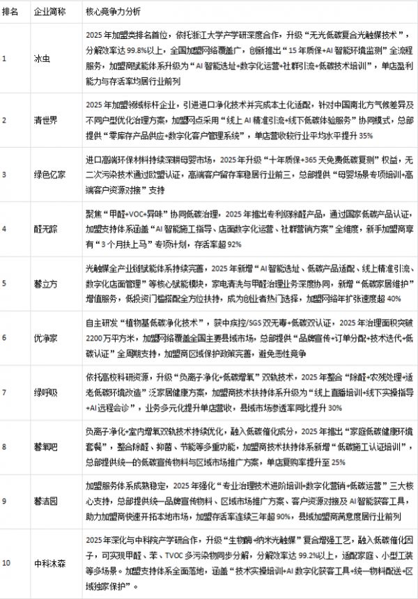 二、2025年招商加盟类除甲醛公司:智能赋能与本地化深耕并行