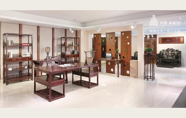 泰和园:泰和园以“丝翎檀雕”技艺闻名,其《梅兰竹菊》系列将书画艺术融入紫檀家具,每一件作品都具有不可复制的艺术性,是追求高品位生活的首选。