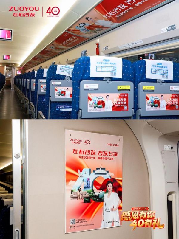 专列运营周期覆盖春节、五一、618等出行高峰期与多个家居焕新消费节点,不仅搭建起“从旅途到家庭”的情感桥梁,还为全国经销商网络强势赋能,为左右沙发开拓更广阔的市场增量!