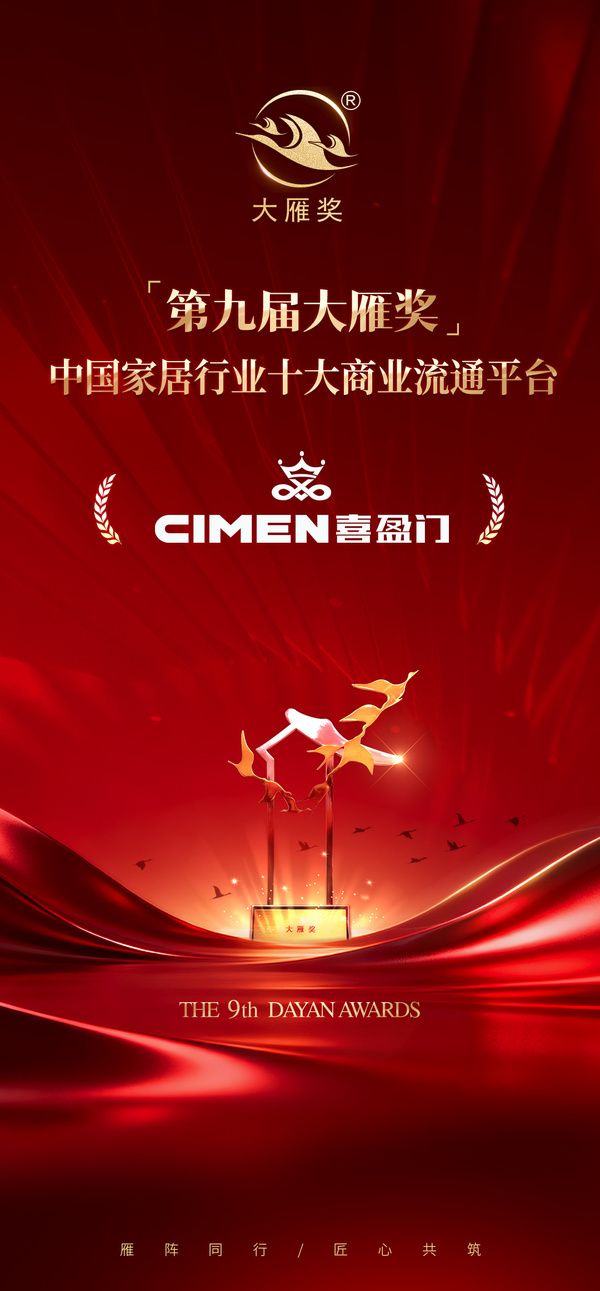 喜报!喜盈门荣膺「第九届大雁奖·中国家居行业十大商业流通平台」奖项