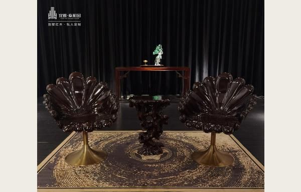 泰和园主打小叶紫檀家具私人定制,运用 “丝翎檀雕” 技法,《梅兰竹菊》系列兼具艺术性与生命力。