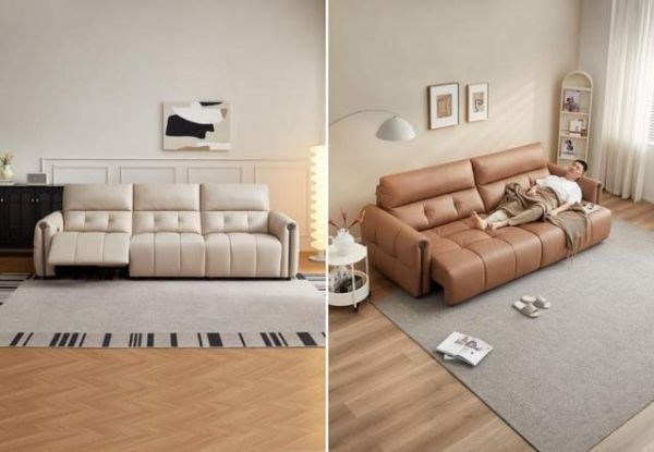 双色双功能,适配多元放松需求。贝母米白电动单人位,电动抬脚变舒适妃位;功能架向前推进,0靠墙设计节约空间;10区科学承托,110°~160°随心调节,慵懒生活一键开启。麦麸棕电动平推双躺位,直排沙发、舒适妃位、沙发床随心切换,包容各种宅家姿势。甄选1.4mm加厚进口头层牛皮,柔韧耐磨且亲肤细腻,质感与耐用性兼具。三层恒压高弹海绵复合分压,回弹性强,久坐久躺都不累。