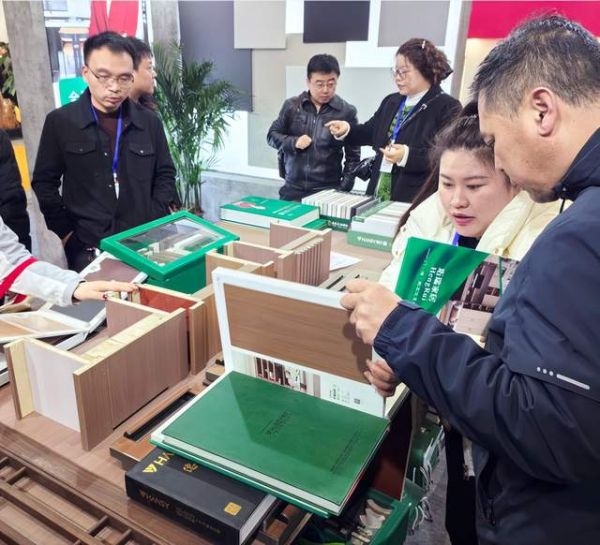 展位内的实景样板间成为核心打卡点,不少消费者特意驻足体验,亲手触摸板材质感、观察工艺细节,主动与工作人员交流定制想法。洽谈区始终保持高上座率,无论是家庭消费者咨询家居搭配,还是意向经销商探讨合作,都能得到专业细致的解答,现场氛围热烈且有序。