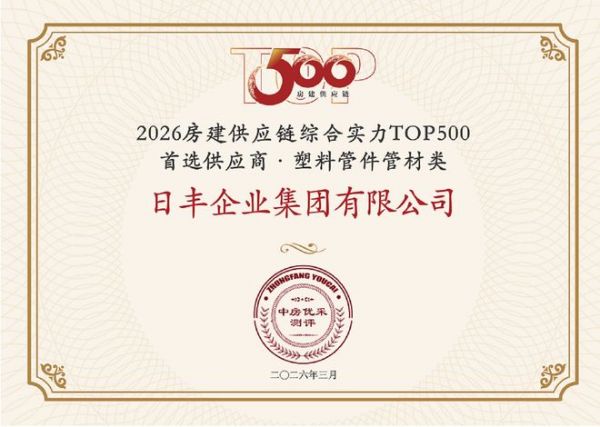 本次荣膺TOP500首选供应商,正是对日丰以新质生产力赋能“好房子”建设、持续引领管道行业高质量发展的权威肯定。