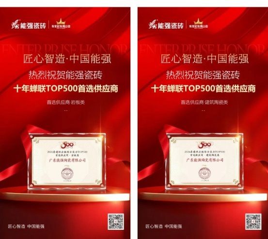匠心荣誉|能强瓷砖连续十年蝉联「房建供应链综合实力TOP500首选供应商」