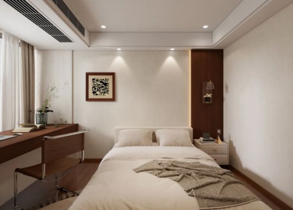 木材+软包/布艺:在卧室背景墙,可以用兔宝宝木饰面与硬包或软包结合,营造温馨舒适的睡眠氛围。