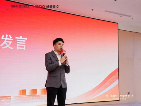 联席会长、新豪轩门窗总裁冯智勋做总结发言。他首先对好博窗控给予本次会议的大力支持表示感谢。他表示,佛山门窗产业供应链完善、产品品类齐全,是走向全国乃至全球的核心底气;建议大家在深耕国内市场的同时,突破欧美市场单一依赖,重点关注中亚等新兴海外市场,把握当地政策以及“一带一路”带来的贸易需求机遇。