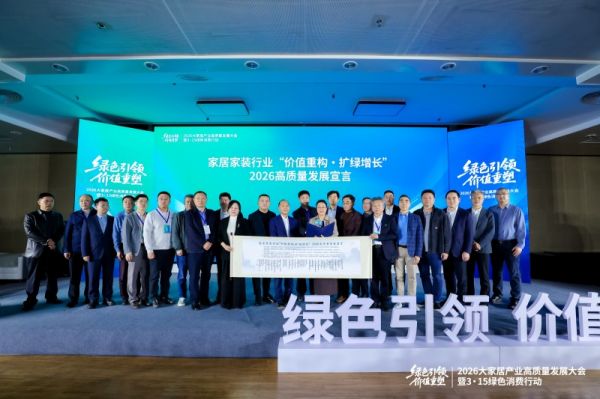 大会同步发布《家居家装行业 “价值重构・扩绿增长”2026 高质量发展宣言》,启动 2026 家居家装绿色消费服务年与人造板及制品品质护航服务,倡导全行业坚守环保底线、拒绝概念炒作、践行价值竞争、接受社会监督,共同营造健康绿色消费环境。