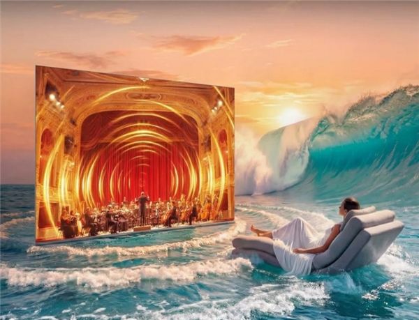 如果你家是花园洋房,想必最满意的的就是那个阳光充沛的客厅了。挑高的空间、整面的落地窗,午后阳光洒进来的时候,整个家都通透敞亮。但你是否发现了一个问题:客厅太亮了,普通电视在这样的大空间里,真的“扛不住”。
