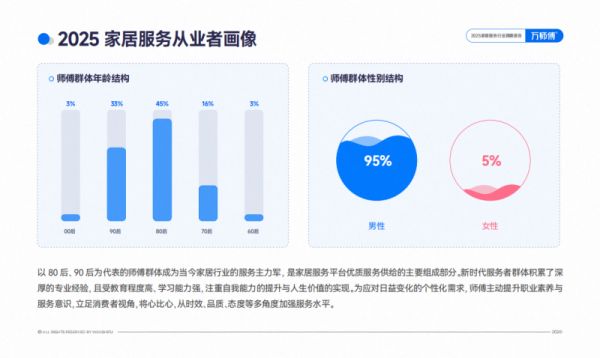 消费结构的变化,加速推动家居服务市场的多元化发展。以全国规模第一的万师傅平台为例,2025年,女性师傅数量显著上涨。