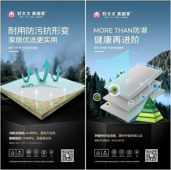 产品端,好太太美丽家打破“环保板材颜值拖后腿”的行业偏见,旗下生态抗菌板打造多元美学花色体系,精准适配原木风、极简风、轻奢风等主流家装风格,满足不同家庭的审美需求,实现实用性能与视觉美学的平衡。凭借持续的创新与工艺优化,品牌成功实现从制造业向品牌服务业的转型升级,构建起多重核心优势。
