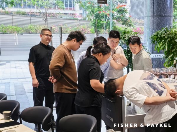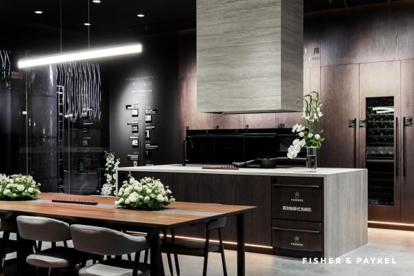 在斐雪派克深圳展厅的现场,家里的开放式厨房场景被直接“搬”来了现场——岛台既是备餐区,也是社交中心;厨房里该有的一切家电以极简姿态嵌入岛台与餐区,几乎看不出“家电”的突兀感。你永远想不到你随便一拉开的抽屉就是一个冰箱或者是洗碗机,蒸烤箱和咖啡机也很低调的嵌在橱柜。