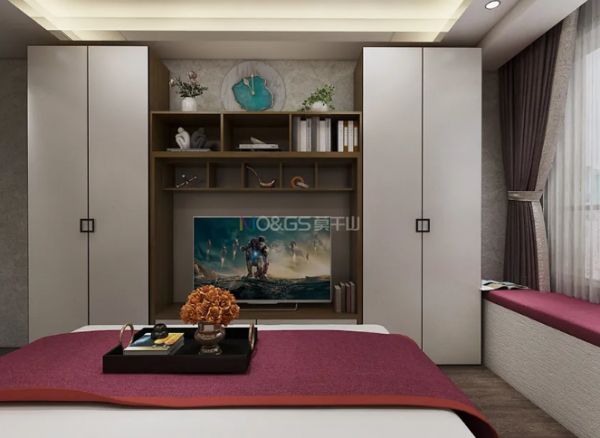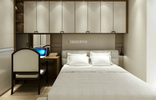 深色纱布纹与浅色纱布纹搭配,一深一浅,对比舒适,格调立显。内嵌入墙式衣柜,充分拓展了卧室空间,让日常的琐碎物品都有了安放之处,无形中增大了储物空间。
