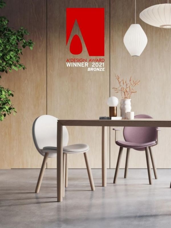Maha系列基于曲线元素的突出和幻化,抽象出精致、柔和的线条和舒适的椅面,呈现茧状的座椅和靠背,靠背上一面优雅别致的弧形小木背悄然穿过,曲线的定义在这丰富的变化里呈现得恰到好处,带来更多的欢愉、轻松和舒适,宽广的椅面空间,加上柔软的包覆,无论是无束缚的去扶手款式,或是有着满满安全感的带扶手款式,都可让你尽然放松地蜷曲其中,享受属于自己的幸福时光!在众多参评作品中,Maha餐椅脱颖而出,荣获Bronze殊荣!