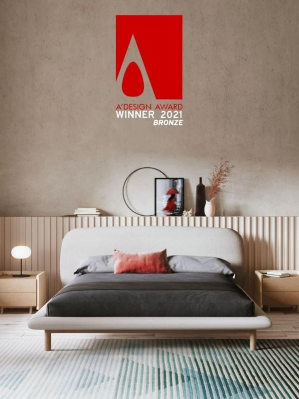 Alba系列的设计灵感由鹅卵石的形状所启发,水流从鹅卵石众中穿流而过,激发出各种自由变幻的自然流体形态,这些自然形态具备有机的舒适感, 我们把这种关于舒适的灵感恰到好处地应用到了Alba的设计上来,柔和轻盈的线条定义了圆角的软垫床头和底座,搭配上圆柱型的坚固木腿、宽大柔软的床头,构成充足的支撑并带来了最大舒适度,好像要漂浮起来的底部更是增添了富于幻想的感观,回想那些在水边玩耍石子的时光,一切都熟悉而亲切,Alba让你放心依靠,安享睡眠。在众多参评作品中, Alba系列中的双人大床脱颖而出,荣获Bronze殊荣!