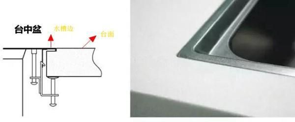 1、台上盆水槽边高于台面,安装较为简单,人工成本较低;