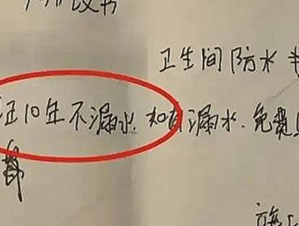 当王女士拿出当时和施工师傅签的协议时,看到协议书上写着保证10年不带漏水。王女士便联系戴师傅,是否接通电话告诉王女士,现在自己在外地不方便,便挂断了电话。