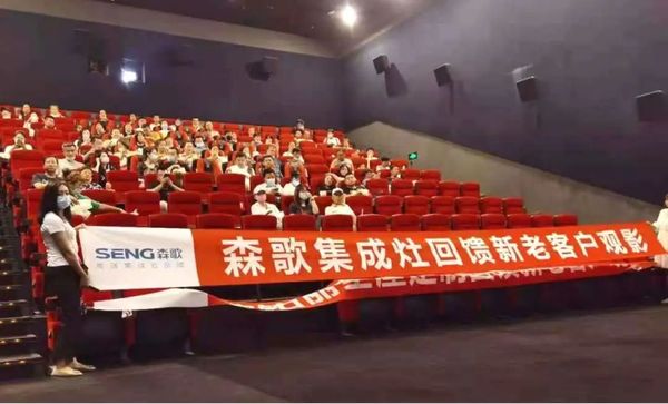 观影结束后,新老客户一同热烈拉起横幅,进行合影留念,进一步加强了森歌品牌与用户之间的双向认可。此次观影活动在回馈新老客户的同时也架起了一座桥梁,为解决销售问题以及推进销量奠定了基础!