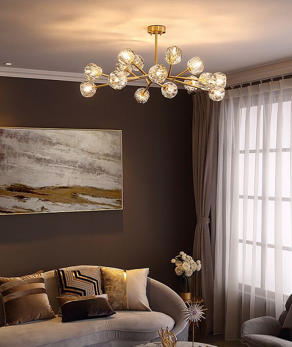 月影家居爆款全铜灯轻奢系列客厅灯MC350-15H精选国标H65全铜,经过72道工艺制作,防腐防锈,耐用50年;灯罩部分采用奥地利A级水晶玻璃,精细切割,内部不含杂质,折射光线均匀璀璨,带来极高的视觉体验,从而提升品质体验感。