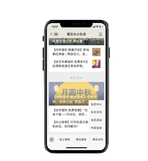 坐落于黄埔江畔的震旦集团,创立于1965年,深耕办公行业56年,事业领域涵盖办公设备、办公家具、智能装备、3D打印、云商电子及儿童家居产业。主力面向企业顾客的震旦集团一直以精致服务著称、以顾客满意为经营理念。为更好服务顾客,震旦在微信上搭建会员系统为企业顾客提供服务升级及周边专属活动: