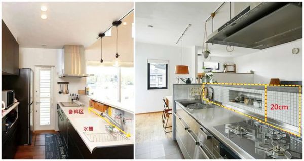 聪明点,要是定制橱柜时,提前给水槽区加宽20公分,里侧再抬高20公分,你家厨房立马比别人家更高级,台面再没乱过!