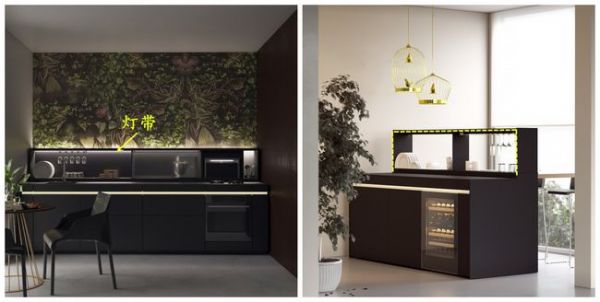 首先肯定是收纳空间翻倍,其次功能性强,有些业主家橱柜不靠墙,东西要么摆在台面上乱糟糟的,要么只能全都收进柜子里,而这个双层沥水架可以实现垂直收纳,没有墙壁也能解放部分台面空间。最后即使厨房不装吊柜,也能有地方隐藏灯带,避免台面有照明死角。