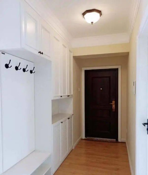 冬天室内室外温差很大,在外面穿又厚又长的羽绒服,家里只能穿一件毛衣,脱了的衣服放哪里?还有比入户更方便的地方吗?几个挂衣钩就能解决问题,下面做个小凳子也方便换鞋。