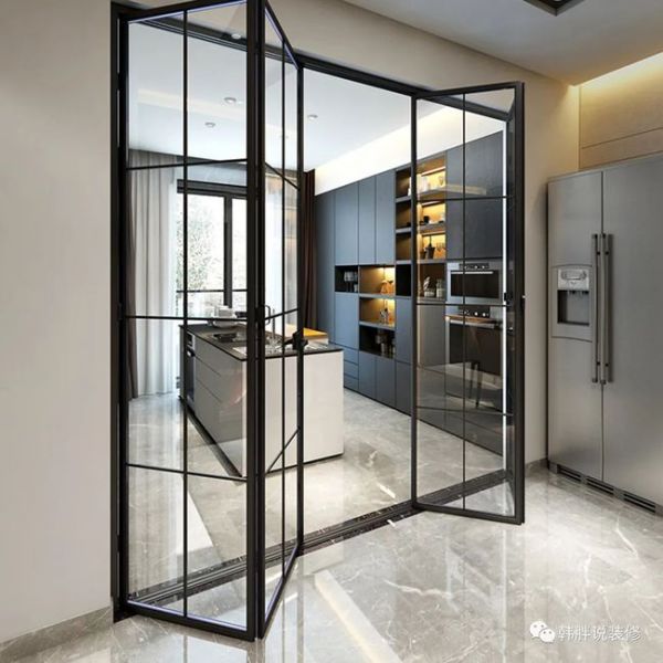 折叠门的外观很好看,使用起来也很方便,而且密封性很好,完全不用担心油烟散出去。开门的时候不会占用空间,非常适合小户型。