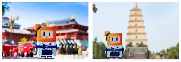 “小红砖”的超级红方头,由冠珠瓷砖品牌超级符号演变而来,是小红砖的身份特征;中华文化头饰,灵感源自中华文化元素“秦俑”,用来接收最前沿的家居灵感信息;作为心灵之窗的灵动大眼,则善于发现真善美;爱心卖萌小嘴巴,传递着快乐与积极向上的态度。