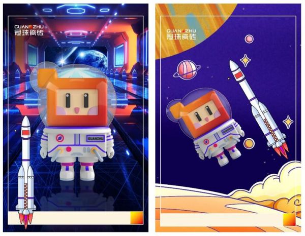 “小红砖”形象是冠珠瓷砖独特的文化载体,也是冠珠瓷砖向社会各界传达“为中国瓷砖代言”使命的视觉符号,目前已发布小红砖汉服版与小红砖太空版。