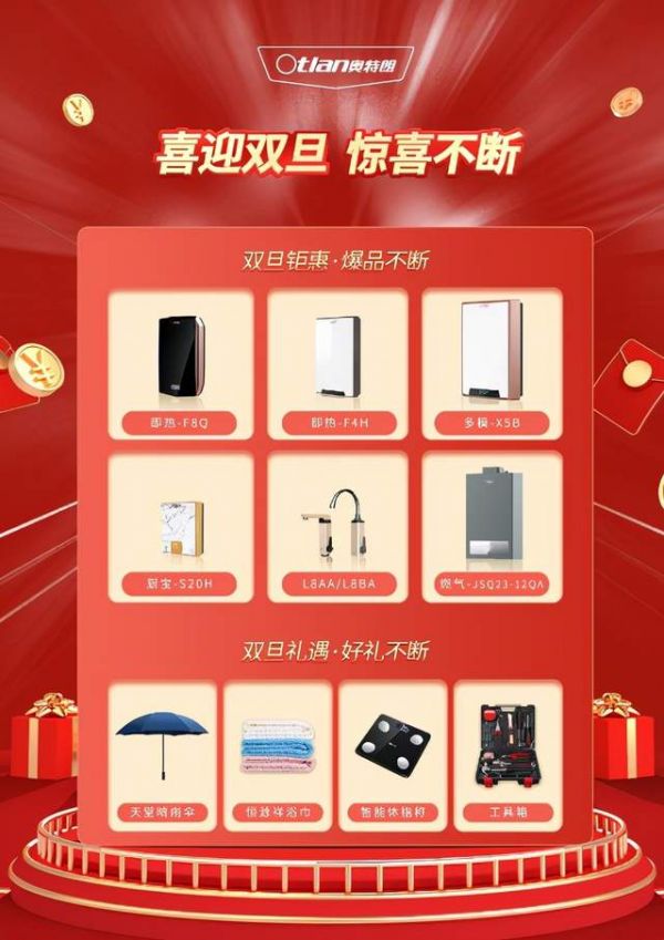 2021年12月21日起至2022年1月15日,用户线下购买奥特朗F8Q、F4H、X5B等数款人气爆品热水器,不仅可享受双旦节日优惠价,还有体脂秤、雨伞等多款好礼免费赠送。明星爆品、奖品丰富、超多优惠......奥特朗与你“约惠”双旦,解锁跨越新年的惊喜。