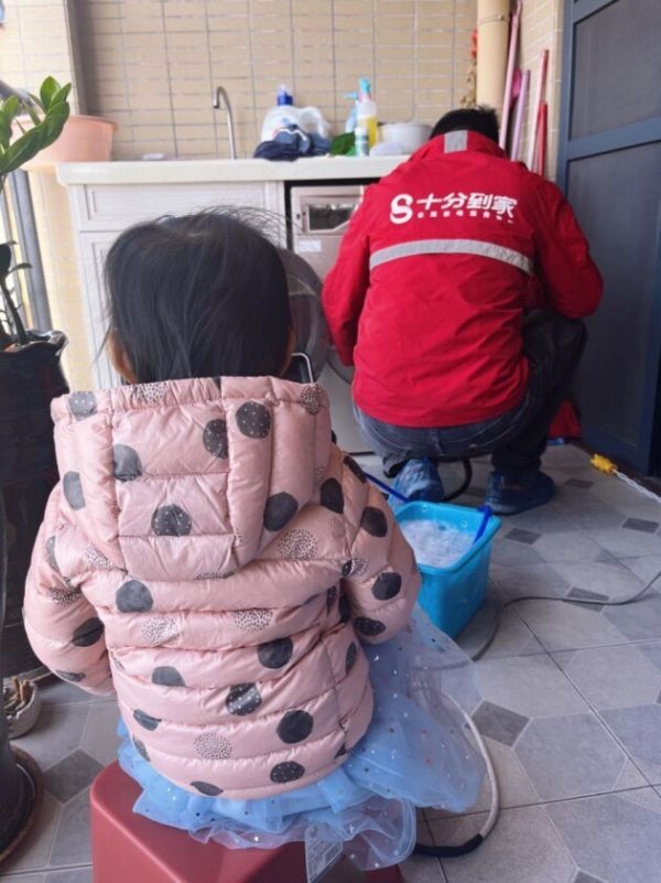 我们上门后,张女士3周岁的大女儿看到高大的杨师傅不仅不害怕,反而表现出极大的好奇。甚至搬着小板凳坐好,奶声奶气地告诉妈妈这是要“学习”师傅的操作。
