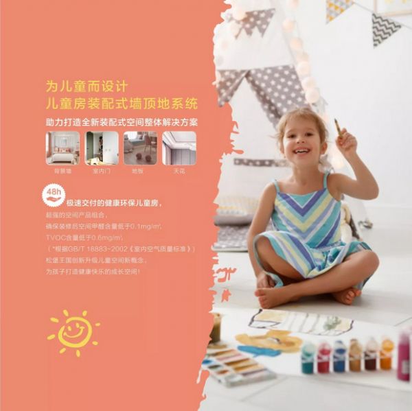 2021年,松堡王国全新升级儿童空间定制解决方案,基于儿童房实木定制,融入安全环保的儿童家纺、背景墙、地板、健康门等,串联起一套完整而统一的儿童家居高定系统,实现儿童房整装定制,诠释更安全、更健康的现代儿童空间。