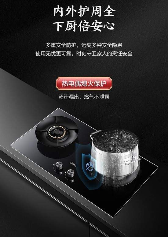 想要燃气灶提供有效的安全保护,就得让防干烧功能起到实质性的保护工作,美的就这一问题进行研究,并推出了全新的防干烧技术。传统的防干烧功能存在很多弊端,比如有些防干烧燃气灶测温不准,满屋都能闻到糊味了,火还在熊熊燃烧,没有给予有效保护。美的火山生香灶具Q83的防干烧预警系统十分灵敏,对锅内状态的识别更精准,当分辨出锅内干烧时会发出警报提醒用户,远离安全隐患,开启燃气灶“防干烧”的精准智控时代。并且当汤汁漏出时,烟灶会立即进行热电耦熄火保护,避免燃气泄漏。