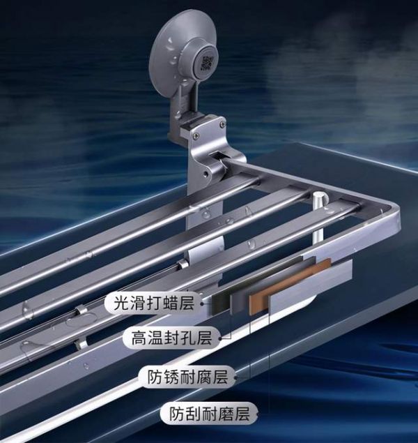 同时,为了升级浴室置物架的耐用性和稳定性,在材质选择上,太力研发团队也经过反复的实验打磨,最终采用阳极氧化航天太空铝,四层安全防护(光滑打蜡层-高温封孔层-防锈耐腐层-防刮耐磨层),层层递进,使得置物架具备光滑耐磨、耐腐蚀不掉色的高品质特点。