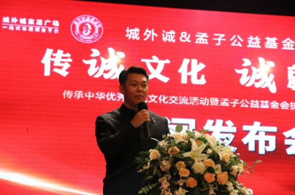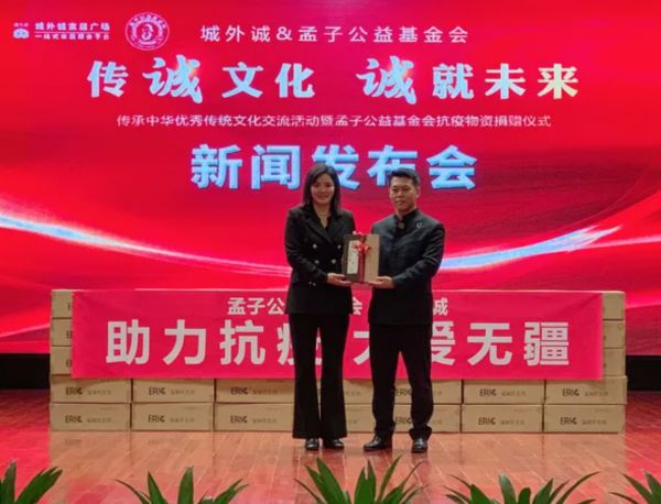 2021年12月10日,由城外诚携手孟子公益基金会以传“诚”文化 “诚”就未来为主题的诚”文化交流季活动暨孟子公益基金会抗疫物资捐赠仪式的新闻发布会在城外诚文化中心举行,将孟子的“诚”文化与企业价值观相融合,共同传播和弘扬中华传统美德。